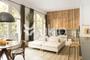 Al entrar en el apartamento, el vestíbulo está revestido con escenas de diferentes paisajes naturales. La cocina abierta da a la zona de comedor y al salón. La cocina, acabada con vinilo verde oliva, viene totalmente equipada y amueblada con todos los utensilios de cocina. El espacio está iluminado por las grandes ventanas en forma de media cúpula.