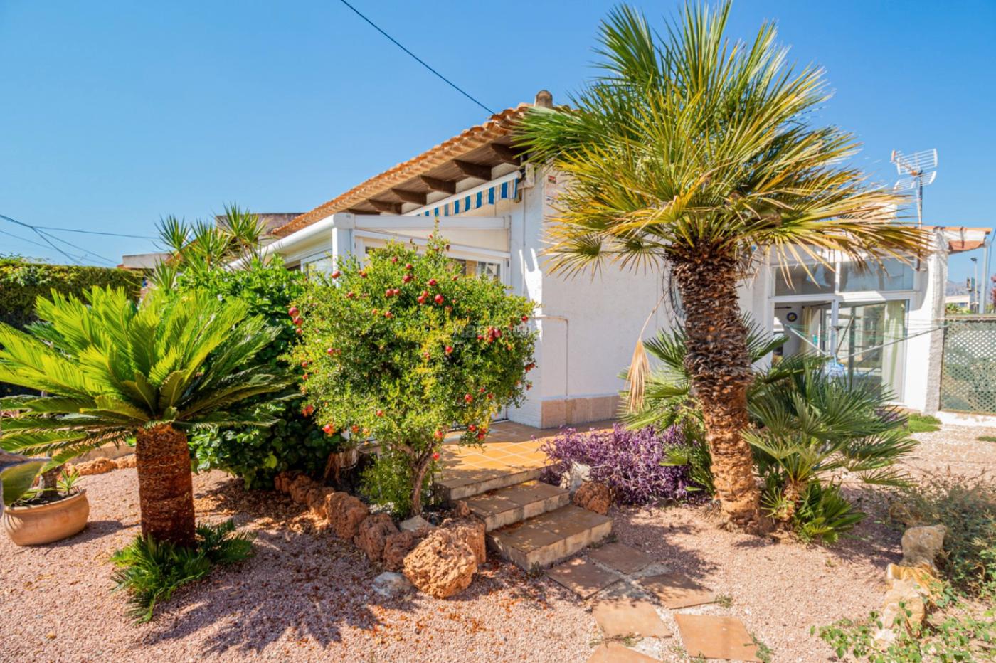 Chalet pareado en alquiler en El Albir, con excelente ubicación cerca de todos los servicios y comodidades. La vivienda, distribuida en una sola planta, ofrece un amplio y luminoso salón-comedor, 2 dormitorios con armarios empotrados y 2 baños completos, uno de ellos en suite. Dispone además de dos terrazas acristaladas que aportan mayor espacio y versatilidad. El chalet se alquila totalmente amueblado y equipado, cuenta con aire acondicionado y rejas de seguridad. Forma parte de una urbanización con piscina comunitaria, ideal para disfrutar del clima mediterráneo durante todo el año.