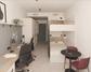 Codomo Living es una nueva experiencia de vivienda para estudiantes y jóvenes profesionales en España. Nuestros estudios dobles, están diseñados para optimizar tu comodidad, con un área de descanso acogedora, dos escritorios para estudiar o trabajar, un espacio cómodo para sentarse y tu propia cocina y baño. La cocina de colores claros está equipada con todo lo necesario para preparar comidas rápidas o impresionar a tus amigos con tus habilidades culinarias. El diseño elegante y funcional incluye una placa de inducción, microondas, nevera y mucho espacio de almacenamiento. El baño cuenta con ducha, inodoro, lavabo y espejo, destacándose por sus detalles en negro. Hay mucho espacio de almacenamiento en los armarios, los escritorios y detrás de la cama.