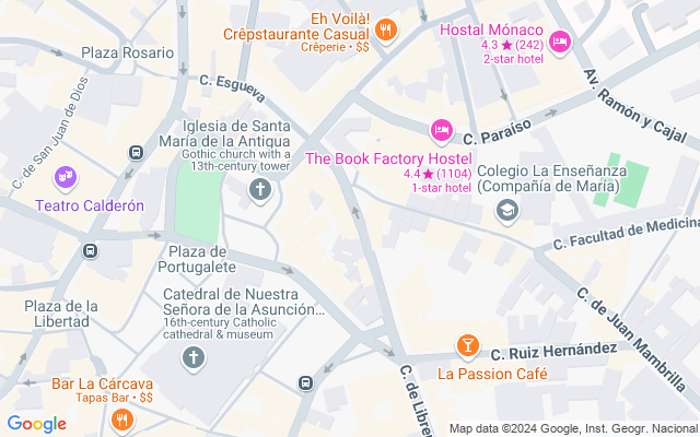 El local se encuentra justo detrás de la Catedral y a muy pocos metros de La Antigua, por lo que se trata de una zona de paso obligado en el casco antiguo de la ciudad. Rodeado de un gran número de locales de restauración-hostelería con amplias terrazas llenas de gente prácticamente a cualquier hora y día del año.