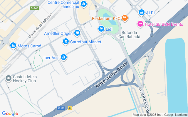 Nave comercial esquinera de 752 m² en Castelldefels (Gran Via del Mar – Universitaria), ideal para showroom + almacén para actividades de comercio minorista no alimentario. Gran visibilidad en entorno de alto tránsito y acceso inmediato a C-32.