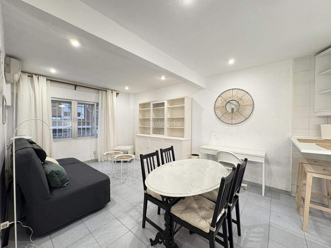 Ref.- 75387 Se alquila fantástico piso exterior de 44 m2. Dispone de 1 habitación, 1 baño con bañera y salón cocina totalmente amueblada y equipada (frigorífico, vitrocerámica, horno, microondas, lavavajillas, campana extractora, lavadora, secadora y termo). Amueblado, con armarios empotrados y suelo de gres. Proyectado de aislante, puerta acorazada, ventanas dobles climalit con puente térmico y persianas de aluminio con aislante interior. Calefacción individual eléctrica y calefacción individual y aire acondicionado por bomba de frío/calor. Excelente ubicación, a 4 minutos a pie de la estación de metro de Cartagena. Fácil acceso a la M-30. Zona con todo tipo de servicios. No se admiten mascotas
