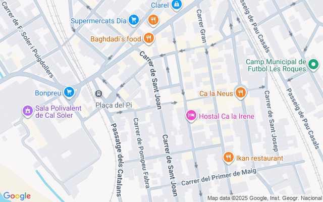 Ubicado en pleno centro de la Sant Vicenç de Castellet a tan solo 210 metros del centro de salud y a 300 de la estación de tren. del ayuntamiento y en una calle de muy difícil aparcamiento.