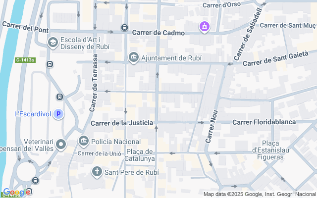 Ubicada en pleno centro del casco urbano de Rubí, junto a la Avenida de l'Estatut y en una calle de muy difícil aparcamiento.