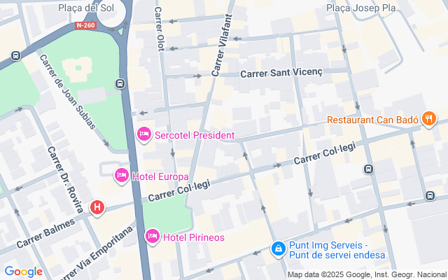 En el corazón de Figueres, a escasos metros de la Rambla, pocos minutos a pie de la zona comercial de la ciudad.