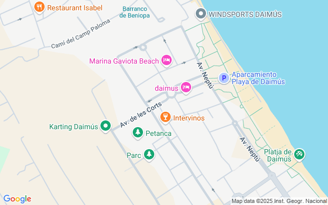 Daimús está situada en la provincia de Valencia, en la comarca de la Safor, su playa es de arena blanca , todos los años recibe galardones de calidad por su limpieza y servicios de la playa ofrecidos.