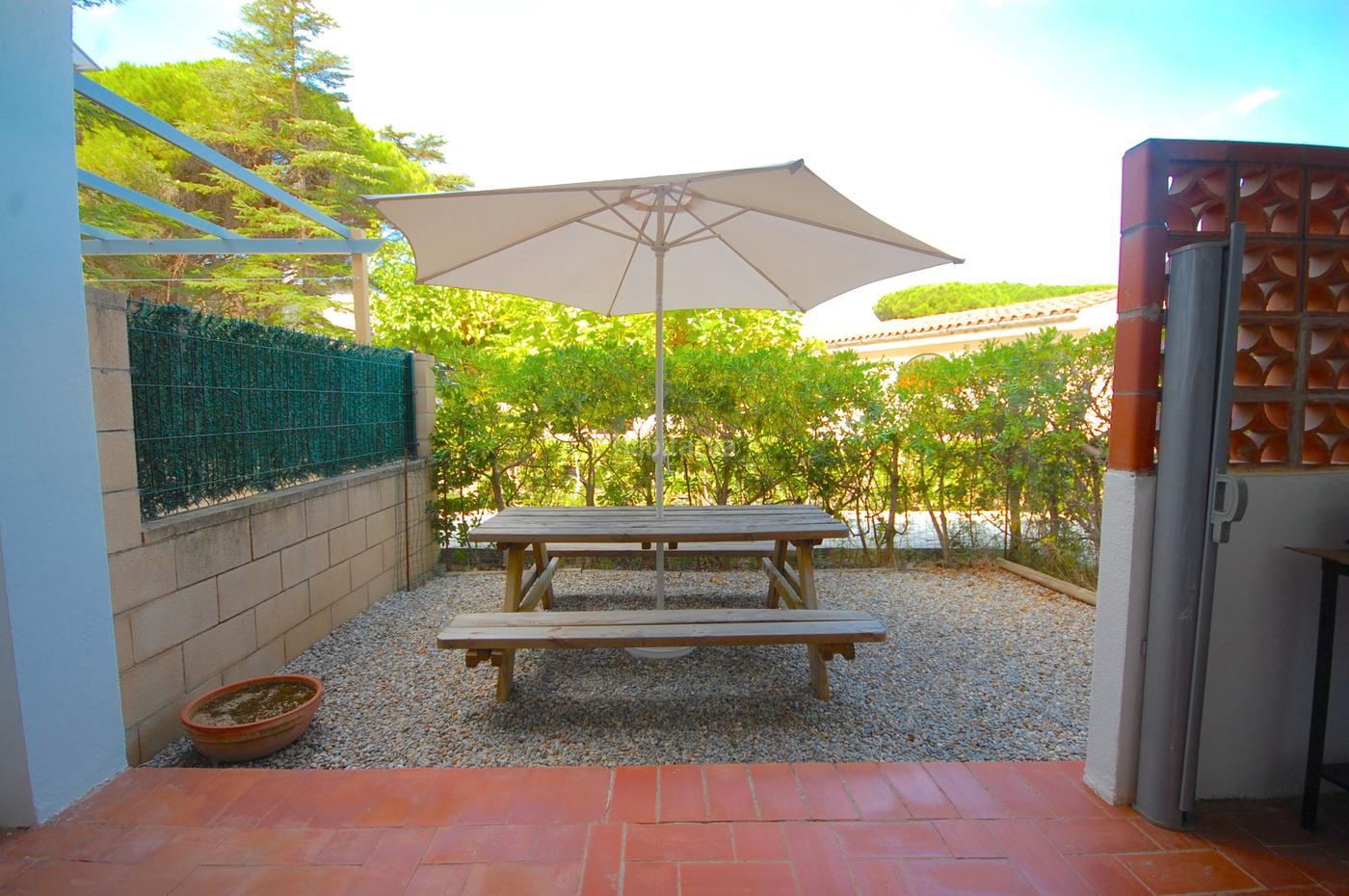 Amplio apartamento en planta baja de 68 m², en excelente estado, listo para entrar a vivir, situado a 1000 m de la playa. Consta de salón-comedor, cocina independiente equipada, salón-comedor con salida a una preciosa terraza con zona de barbacoa, 2 dormitorios dobles con armarios empotrados y acceso a un agradable jardín de 40 m². Amplias posibilidades. Plaza de aparcamiento.