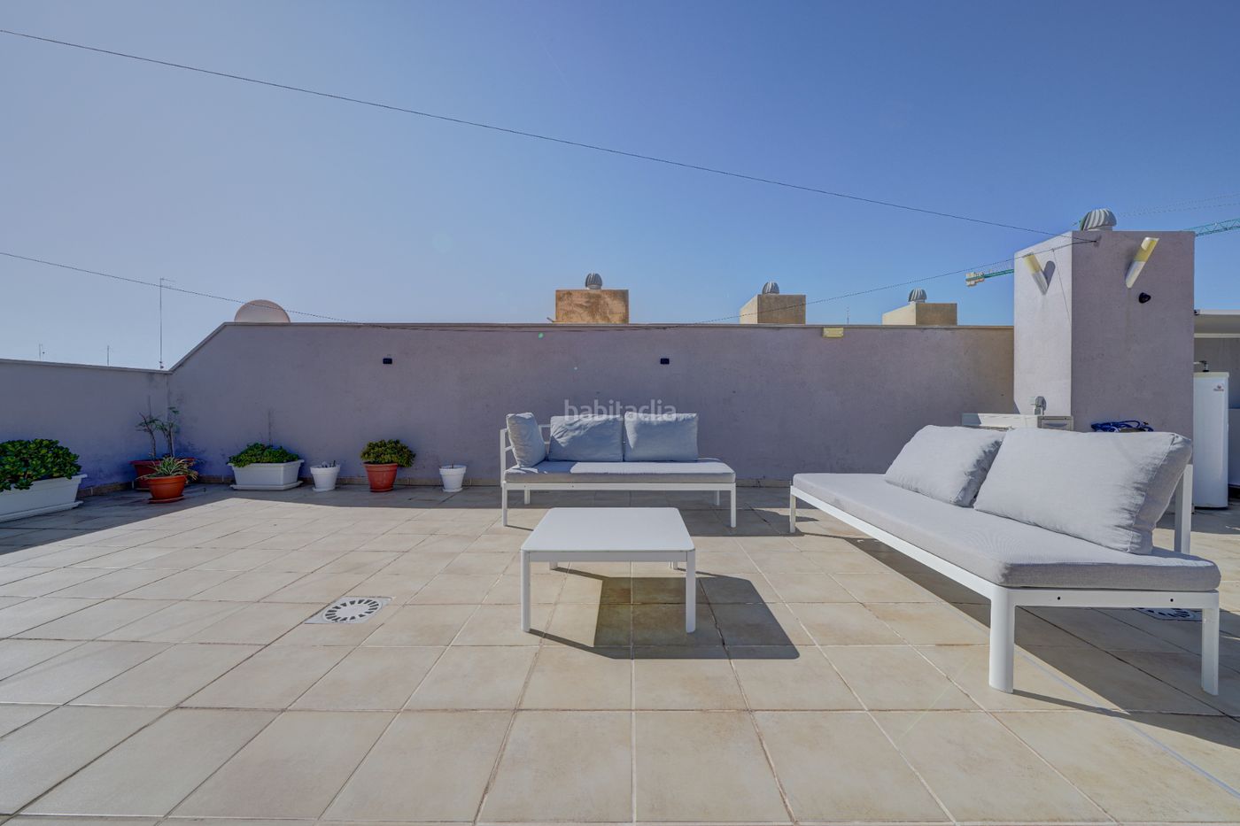 En este ático moderno y práctico no nos falta detalle, aerotermia, carpintería exterior climalit, calefacción centralizada, aire acondicionado y almacenaje exterior fabricado con material resistente en ambas terrazas, todo está pensado para ofrecer una estancia confortable.