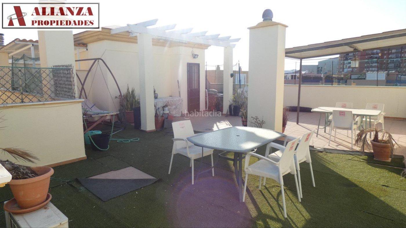 Ático Dúplex de 4 dormitorios, 2 de ellos con armarios empotrados, salón independiente con amplia terraza, cocina amueblada con lavadero, 2 baños completos (uno de ellos en suite) y solárium privado de 85m2 aproximadamente. Piso muy luminoso y totalmente exterior.