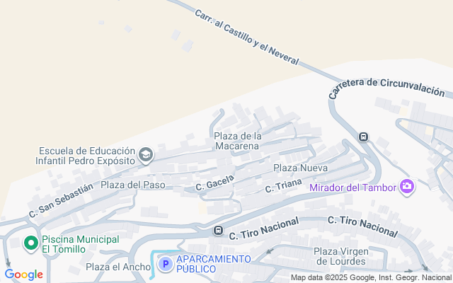 Esta vivienda se encuentra en el barrio con las mejores vistas de la ciudad, a las Faldas del Castillo de Santa Catalina y está rodeada de casas unifamiliares con todos los servicios cercanos: Escuela de Educación Infantil Pedro Expósito, tiendas de barrio, Piscina Municipal El Tomillo, Servicio de Transporte Urbano, I.E.S. García Lorca, Centro de Salud San Felipe, Parques y Miradores, etc.