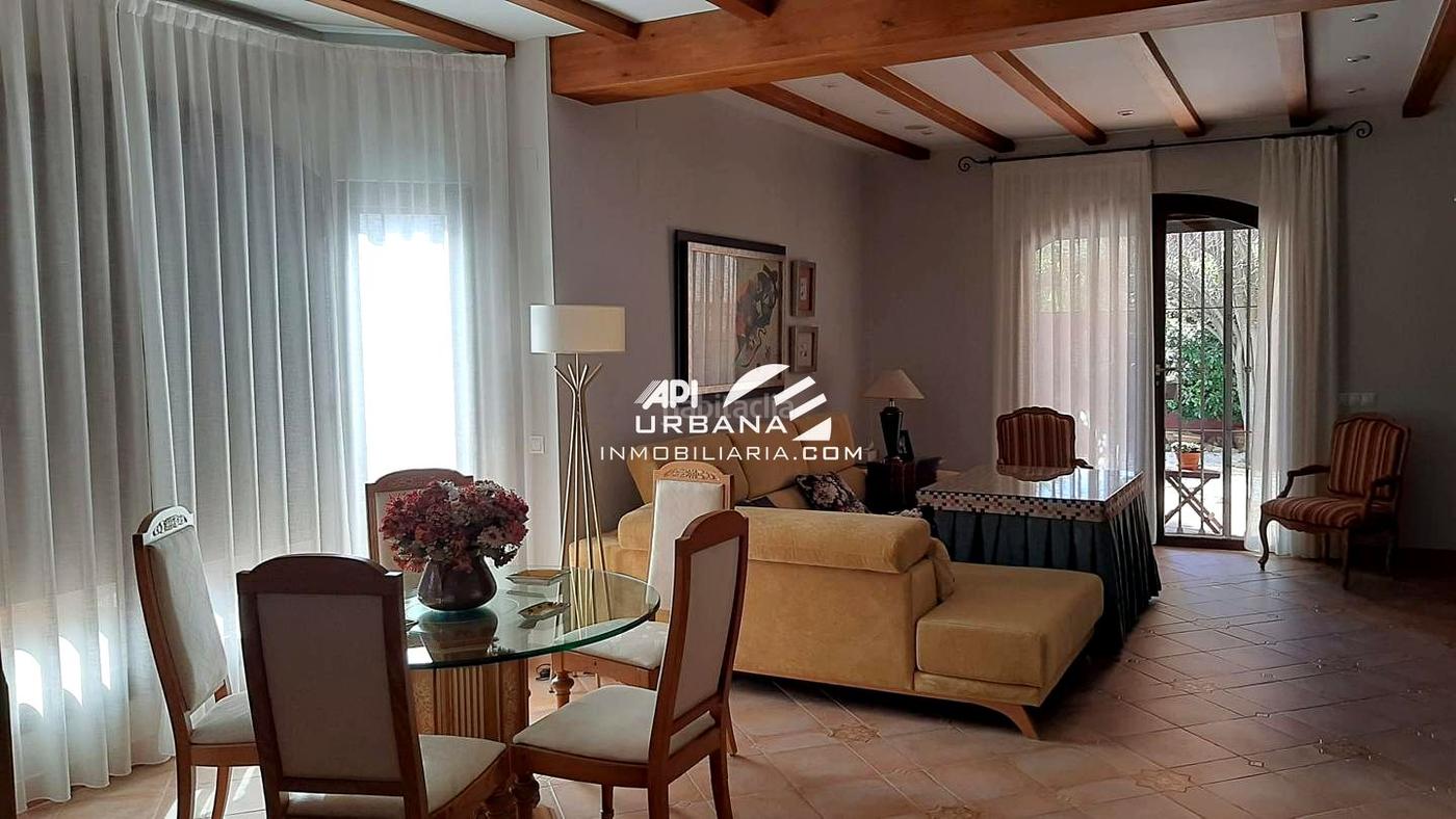 La planta baja consta de un hermoso y luminoso salón comedor, un bonito despacho, cocina totalmente amueblada de estilo rústico, con dos grandes alhacenas y techo abovedado de vigas, un gran lavadero y una hermosa despensa.