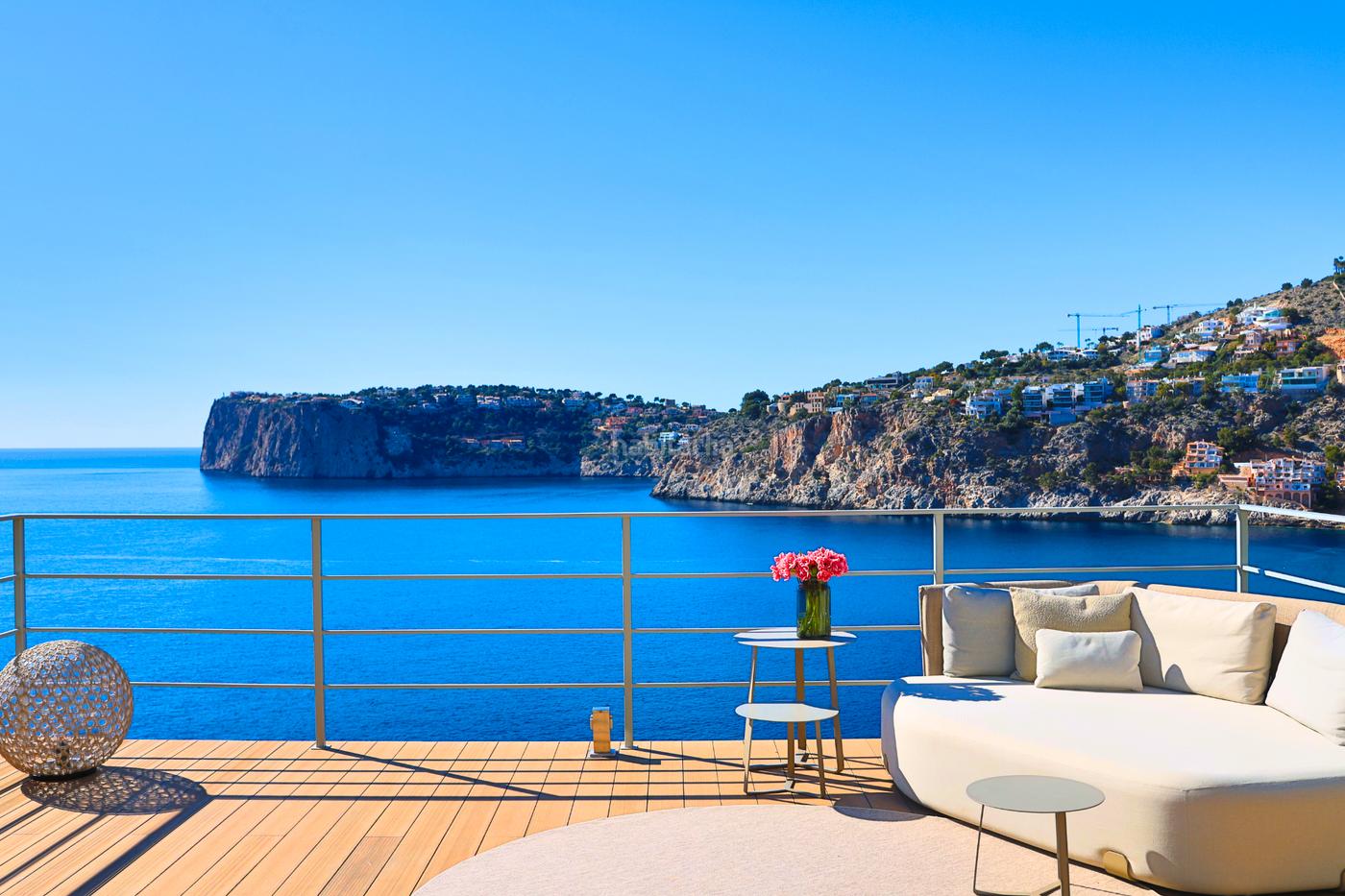 Situated on an impressive 1.541 m² plot directly by the sea, this luxury residence offers unobstructed views over the crystal-clear bay of Cala Llamp – with breathtaking sunsets guaranteed.