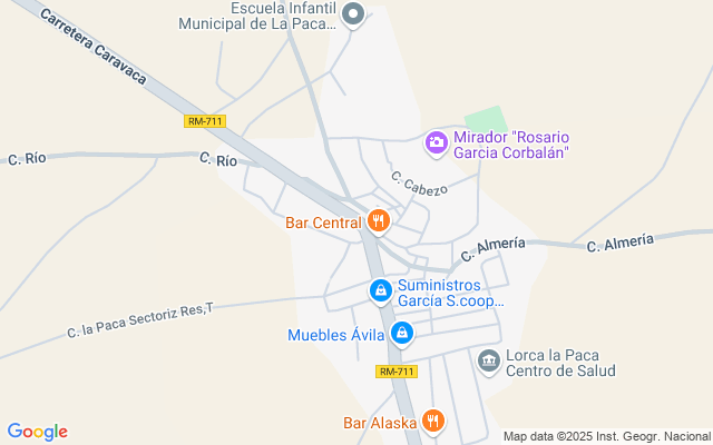 La Paca consta con todos los servicios ; colegio, instituto, consultorio médico, oficina del ayuntamiento, servicios, restauración, gasolinera, parque infantil etcétera