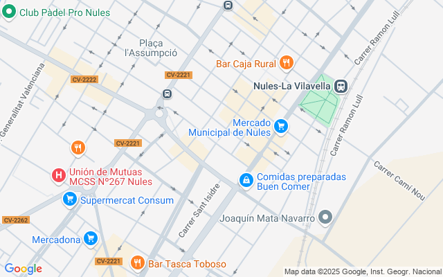 Servicios de transporte: frente a la estación de ferrocarril, Nules dispone de servicios de taxi y de autobús urbano.