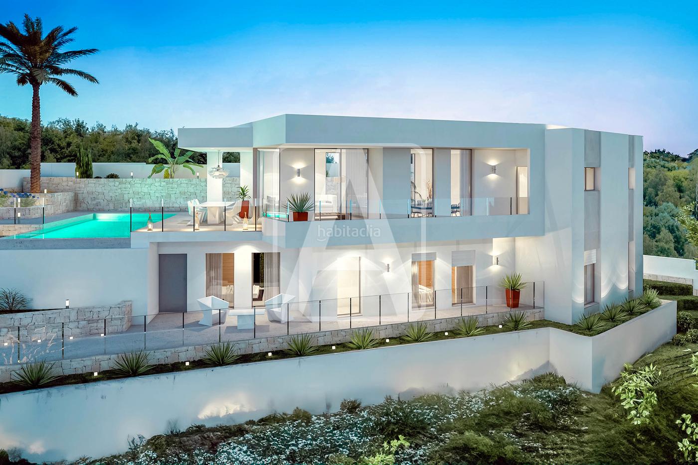 Villa de nueva construcción en Moraira, situada en la zona de Benimeit, a una distancia del centro urbano de Moraira y de sus playas de 4 Km. Se proyecta una vivienda única rodeada de naturaleza, que disfruta de bonitas vistas abiertas a las montañas y viñedos de Moraira, y de mucha tranquilidad. La villa se proyecta en una parcela de 800 m2 y tiene una superficie construida de vivienda de 285 m2 distribuida en 2 plantas de la siguiente manera: en la planta principal encontramos un porche + hall de entrada (con armario empotrado), 1 aseo de cortesía, lavadero despensa de 5 m2, estupenda cocina de 9 m2 que se comunica con el salón comedor de 35 m2 que se fusiona con la estupenda terraza perimetral, (en conjunto 110 m2, con zonas parcialmente cubiertas), donde tenemos una estupenda piscina rectangular de 34 m2 (8,5x4 metros) y una bonita zona chill out. En la planta sótano tenemos 3 dormitorios (18 m2 + 10 m2 + 10 m2), 2 baños (1 en-suite), un amplio vestidor y amplia zona de terraza que se comunica con la terraza principal. Esta villa de estilo moderno destaca por sus calidades, tanto interiores como exteriores, que incluye climatización por conductos (frío y calor), suelo radiante (sistema Aerotermia que ofrece la mayor eficiencia y rendimiento), pavimentos de gres porcelánico tanto para la vivienda como las zonas de terraza, cocina de diseño totalmente equipadas, baños alicatados de gres porcelánico junto con aparatos sanitarios de excelente calidad, carpintería exterior de alta gama, carpintería interior de diseño, iluminación interior y exterior... Disfruta de zona de aparcamiento privada ubicada junto a la entrada principal.