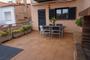 La primera planta se distribuye en sala de estar con terraza, todo orientado hacia una zona pública ajardinada, que además de proporcionar una agradable vista, también proporciona gran luminosidad a la sala. El salón se complementa con una agradable chimenea. Un cuarto de baño, cocina con comedor, despensa y acceso a terraza. Esta terraza es ideal para usarla como comedor de verano. Dispone de toldo y barbacoa.