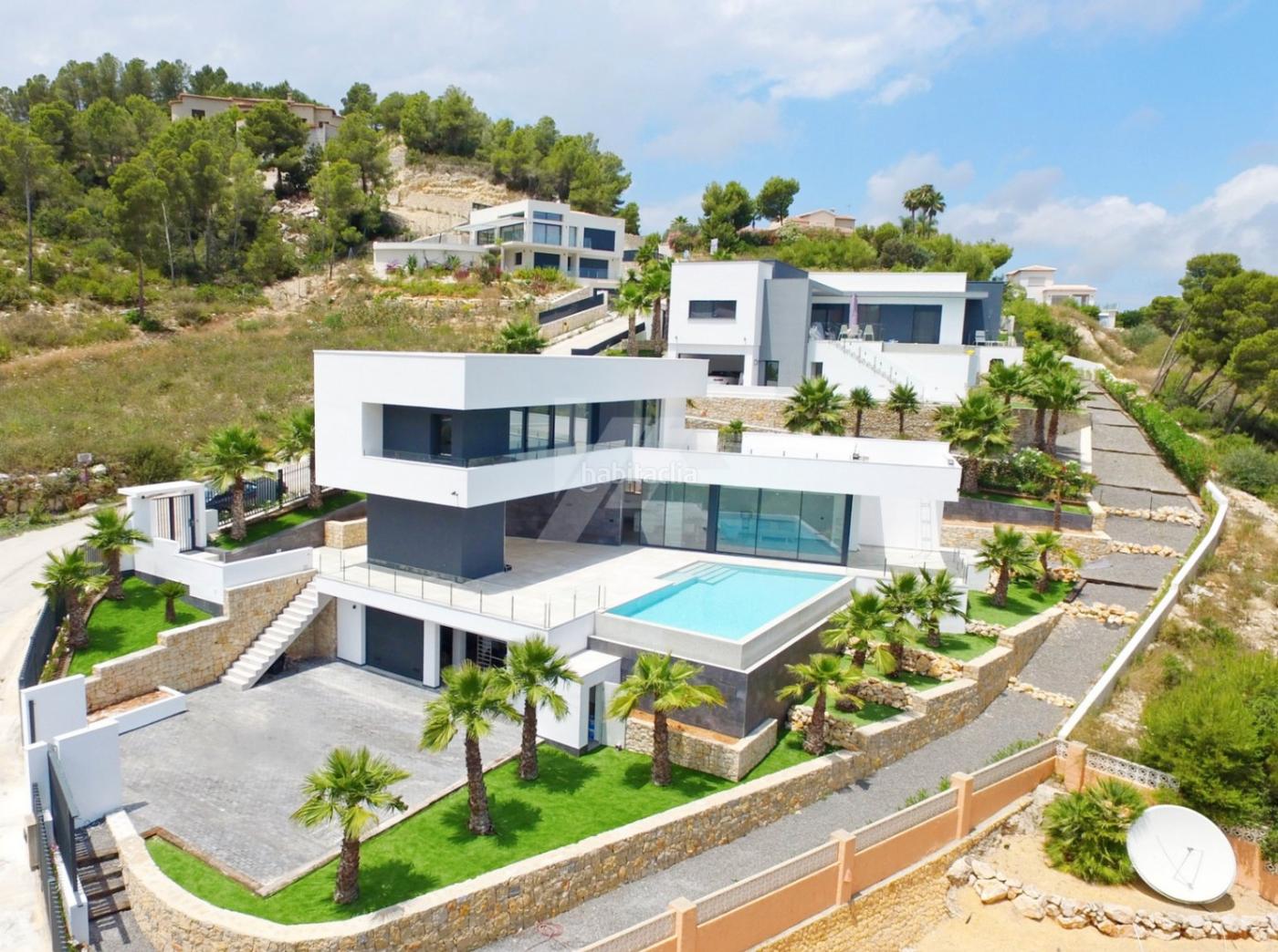 Villa con vistas panorámicas al mar y montaña en Jávea.Exclusiva villa de diseño contemporáneo situada en una de las zonas más privilegiadas de Jávea, con vistas al mar Mediterráneo y, en días despejados, incluso a la isla de Ibiza. Esta propiedad de obra nueva combina a la perfección la arquitectura moderna de líneas rectas con materiales de alta gama y detalles clásicos cuidadosamente integrados.La vivienda se distribuye en tres niveles:Planta sótano: amplio garaje doble con puerta automática y un gran espacio de almacenamiento o sótano multiusos.Planta principal: gran salón-comedor de concepto abierto con abundante luz natural, cocina independiente totalmente equipada con electrodomésticos de alta calidad (vitrocerámica, horno, microondas, lavavajillas) y lavadero anexo. También cuenta con un aseo de cortesía.Desde esta planta se accede a una amplia terraza cubierta con zona de barbacoa, ideal para disfrutar al aire libre durante todo el año, y a una terraza descubierta con piscina desbordante con sistema de iluminación subacuática y vistas despejadas al mar.Planta superior: tres dormitorios dobles, todos con acceso directo a la terraza superior. El dormitorio principal dispone de baño en suite. Un segundo baño completo da servicio al resto de habitaciones.Características destacadas Vistas al mar y a las colinas de Jávea Posibilidad de ver la isla de Ibiza en días despejados Diseño moderno y acabados de alta calidad Piscina infinity con iluminación LED Terraza cubierta con barbacoa integrada Sistema de climatización centralizado (aire acondicionado frío/calor) Calefacción y agua caliente mediante bomba de calor con apoyo solar Garaje cerrado con puerta automática y amplio trasteroUbicación y entornoSituada en una zona residencial exclusiva y tranquila, esta propiedad ofrece privacidad y fácil acceso a todos los servicios: playas, puertos deportivos, restaurantes, colegios internacionales y campos de golf. Una ubicación ideal tanto como residencia habitual como para inversión en el mercado de viviendas de lujo en la Costa Blanca.