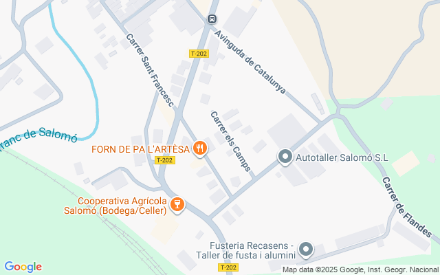 Se encuentra a 500 m de la estación de tren de Salomó.