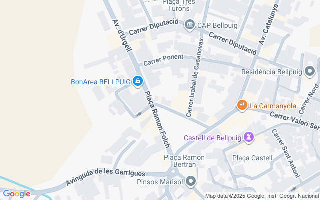 Edificio situado en el municipio de Bellpuig, en la comarca Urgell, provincia de Lleida, de la Comunidad Autónoma de Cataluña. La población de Bellpuig tiene una accesibilidad buena a través de la Autovía A2 (Madrid- Zaragoza- Lleida- Barcelona). Dispone de estación de tren y autobuses.