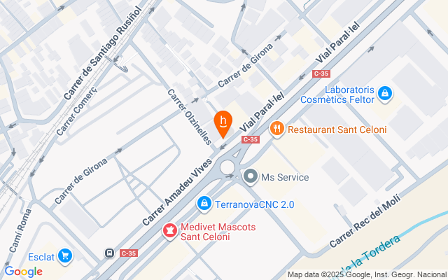En una de las zonas con mayor afluencia de Sant Celoni, y justo al lado de la C-35, se encuentra este edificio destinado a uso hotelero, ahora disponible en exclusiva. Su ubicación destaca por la enorme visibilidad que ofrece a quienes transitan por la principal vía de acceso al municipio, además de situarse a solo unos minutos en coche del centro, donde se concentran comercios, servicios y restauración.