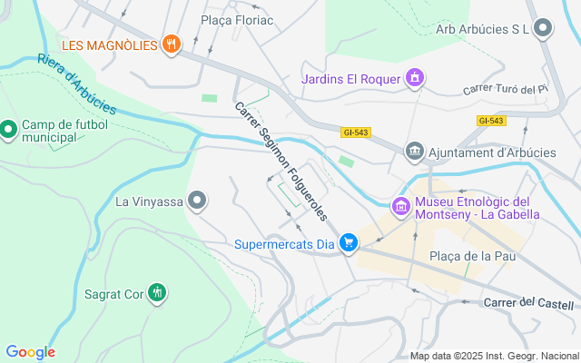 Está dentro del parque natural y cerca del Eix entre Arbúcies y Viladrau.