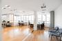 La distribución de la oficina consiste en una planta diáfana, amplia y luminosa que se adapta a distintas necesidades programáticas. Actualmente se encuentra dividida en tabiques y mamparas, conformando un gran espacio diáfano de trabajo, una sala de reuniones, un despacho y una sala de espera. Dispone de un baño adaptado y zona de office. Cuenta con falso techo de pladur con iluminación incorporada, suelo de parquet, sistema de climatización por conductos, calefacción, preinstalación eléctrica, telefónica e informática, sistemas de detección de incendios, ventanas practicables.