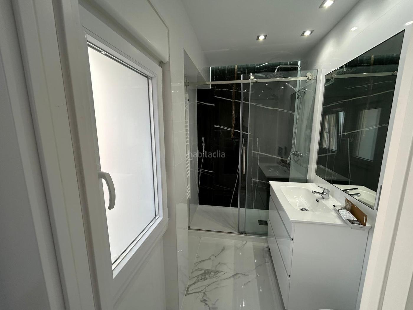 Atravesando el salón encontramos el pasillo encontramos el primero de los baños, con ventanal, completo con plato de ducha.