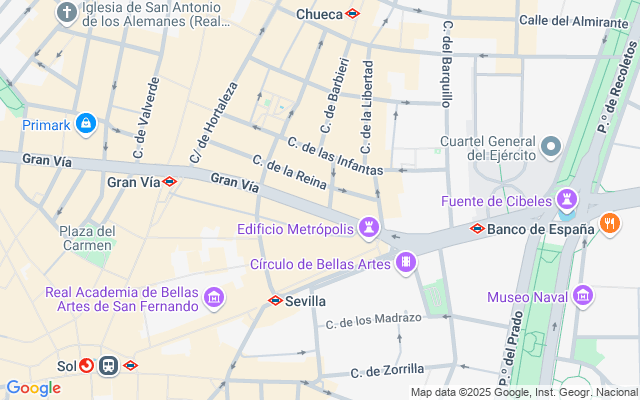 La Gran Vía es una de las principales calles de la capital y la más conocida. Siempre ha sido un referente desde el punto de vista comercial, turístico y de ocio. En este último aspecto es famosa por sus cines y teatro musical, por lo que también es conocida como el Broadway madrileño. También alberga en la actualidad numerosas tiendas de cadenas internacionales de moda.