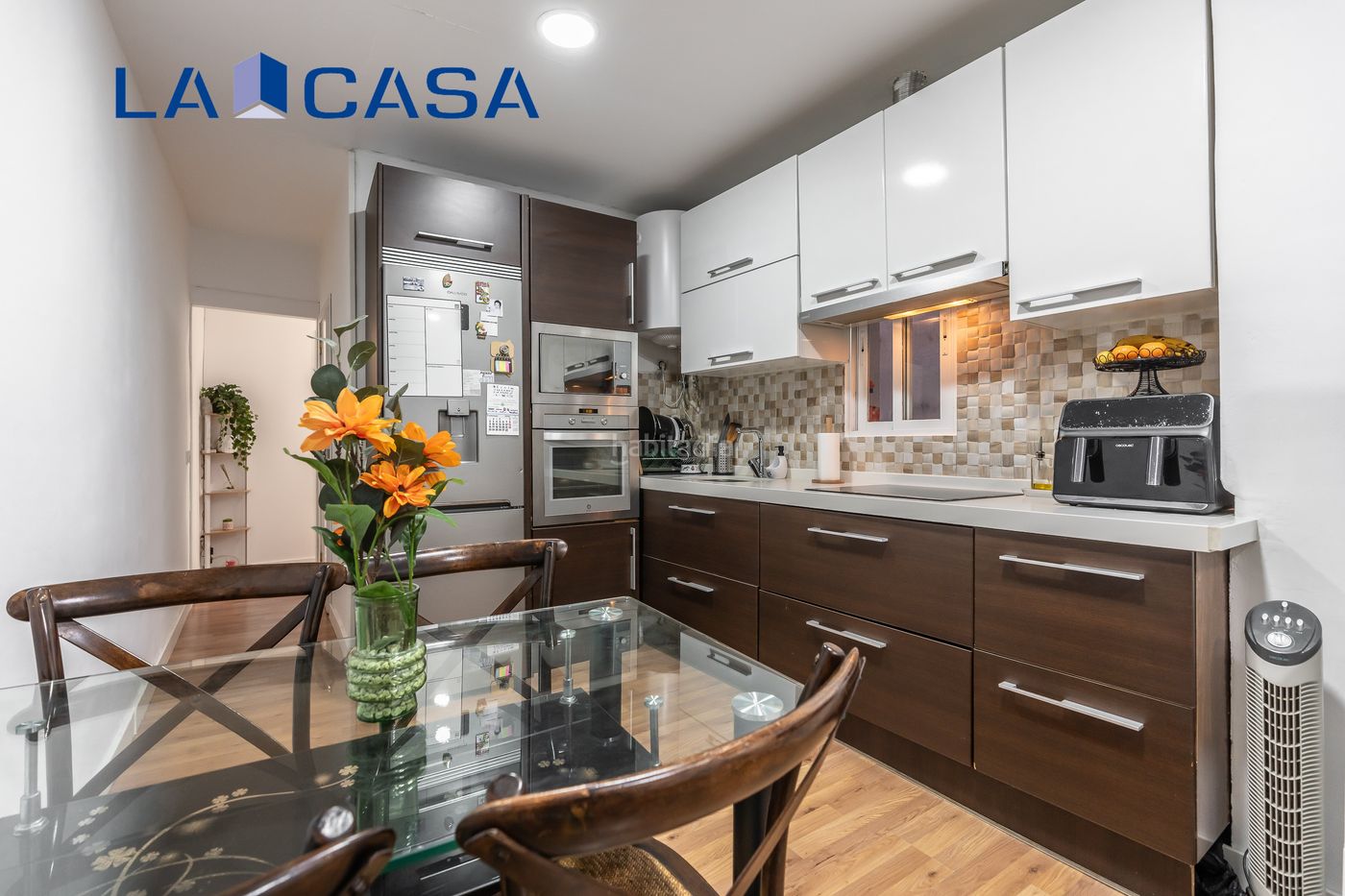 La cocina, independiente, ha sido reformada con un estilo actual y práctico. Su diseño optimiza el almacenamiento y facilita el movimiento, convirtiéndola en un espacio cómodo y funcional.