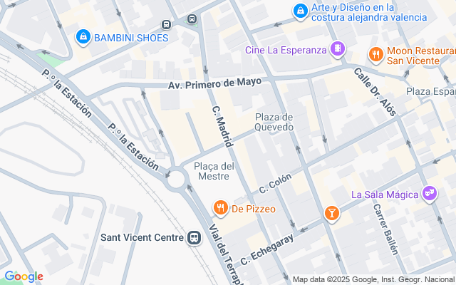 Se encuentra en la Plaza del Mestre junto a la estación del cercanías y a unos 5 minutos andando de la Iglesia y Avenida de la Libertad con todo tipo de comercio y bancos.