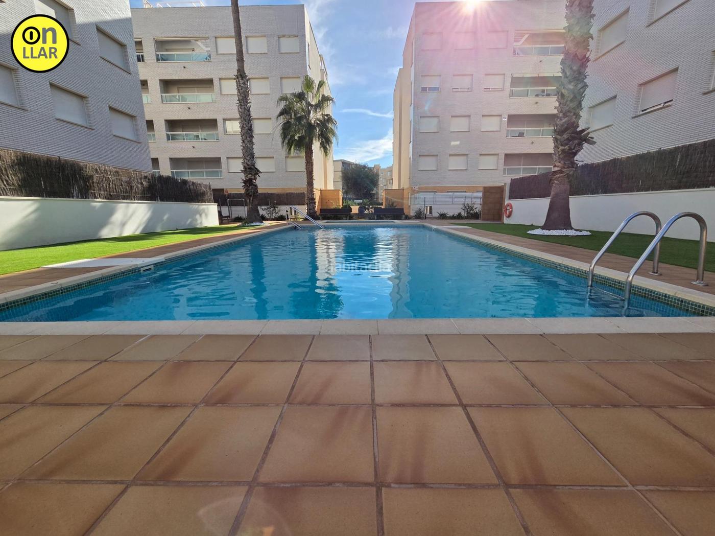 On Llar Immobiliaria. Piso exterior de 84 m² situado en planta baja, con 2 habitaciones y 2 baños. Dispone además de plaza de parking y trastero, ambos situados en la planta sótano del edificio. Finca con ascensor. Zona comunitaria con piscina. A pocos metros de la linea de mar.