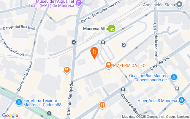 Situada en la confluencia de la Carretera de Santpedor y la Calle Sant Antoni Maria Claret, al lado de la Plaza Bonavista, en el centro de Manresa.