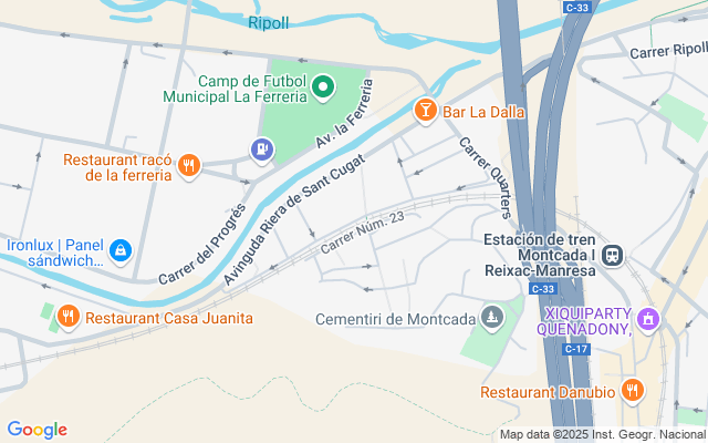 A 5 minutos del centro de Montcada, a 10 minutos de Barcelona por las principales vías C-58 - C-17.
