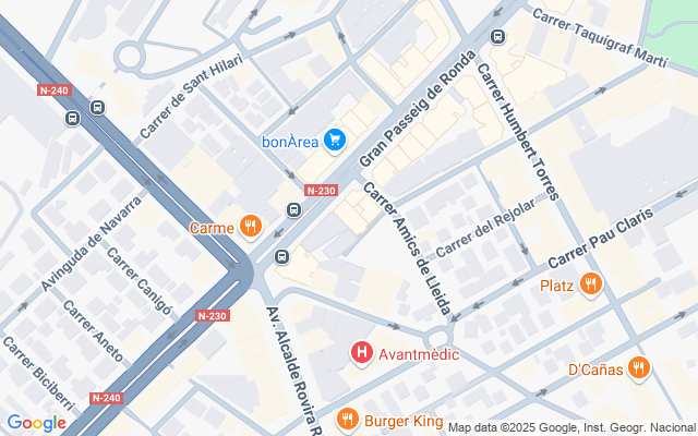 En el entorno se pueden encontrar servicios como supermercados, restaurantes, instalaciones deportivas, centros educativos, oficinas bancarias y otros negocios comerciales. Entre los puntos de interés cercanos destacan el Hospital Universitario Arnau de Vilanova, el Centro de Atención Primaria Capp Ronda, el Parc de l’Aigua, el Centro Comercial Carrefour Lleida, el Institut Ronda y el Museu de Lleida. También se encuentran próximos el Auditori Enric Granados y el Mercat de Ronda.