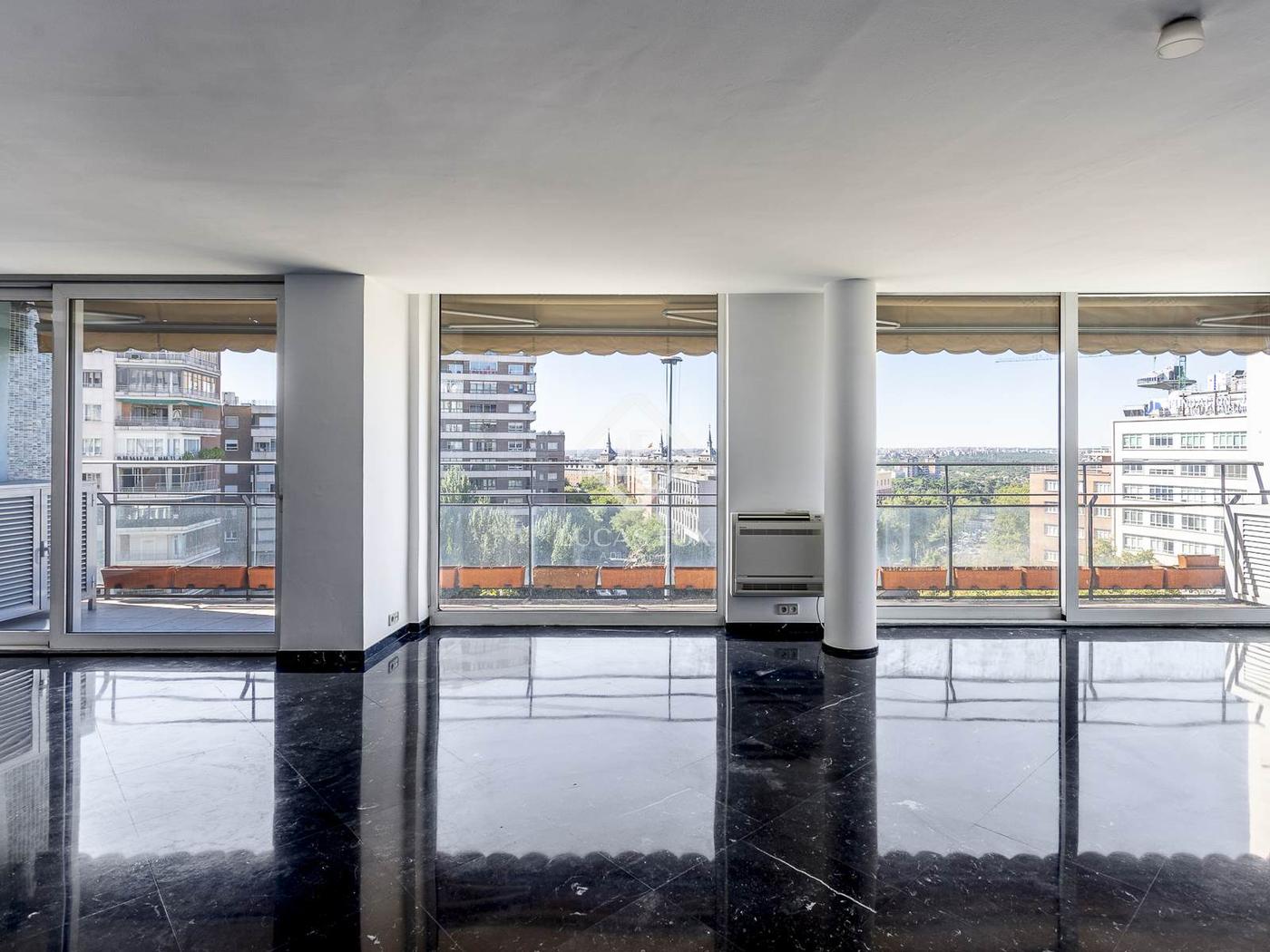 Lucas Fox presenta este exclusivo y luminoso piso completamente exterior con una gran terraza en una finca de autor en venta en Madrid.