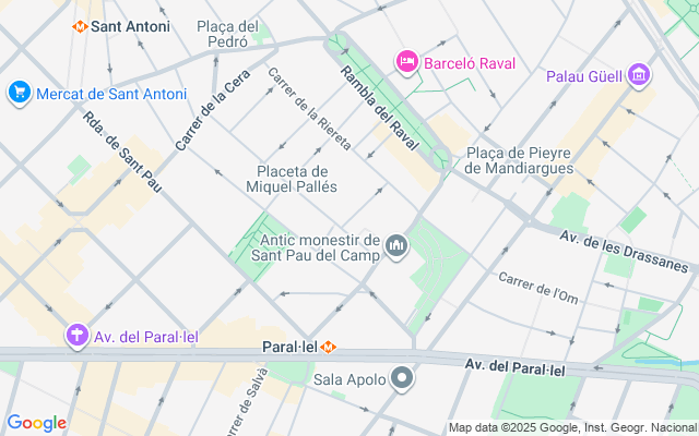 Planta baja ubicada en Barcelona en la zona de El Raval, céntrico y muy cerca de todos los servicios como ambulatorio, centros médicos, colegios, parques, supermercados, vistas despejadas, zonas infantiles, muy bien comunicado por autobús, a 10´ de la parada de metro (Liceu y Sant Antoni).