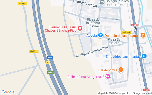 La barriada se encuentra a 17 km a las afueras del casco central de Jaén y su fácil acceso por las vías de comunicación le permite gozar del privilegio de tener todo tipos de establecimientos a su alcance, como hostelería, restauración, ocio, entretenimiento, salud, entre otros. Además, su cercanía con la Autopista A-44 y con la carretera N-323A, le permiten estar en Jaén o en Mengíbar en aproximadamente 10min en coche.