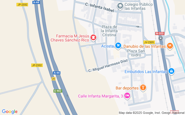 La barriada se encuentra a 17 km a las afueras del casco central de Jaén y su fácil acceso por las vías de comunicación le permite gozar del privilegio de tener todo tipos de establecimientos a su alcance, como hostelería, restauración, ocio, entretenimiento, salud, entre otros. Además, su cercanía con la Autopista A-44 y con la carretera N-323A, le permiten estar en Jaén o en Mengíbar en aproximadamente 10min en coche.