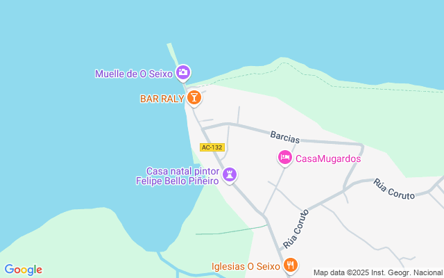 Ubicación: A escasos 500€m del histórico muelle de O Seixo (no visible desde la parcela, pero a un agradable paseo de 5 minutos),y donde se encuentra la casa natal del pintor Felipe Bello Piñeiro, rodeado de un ambiente marinero único.