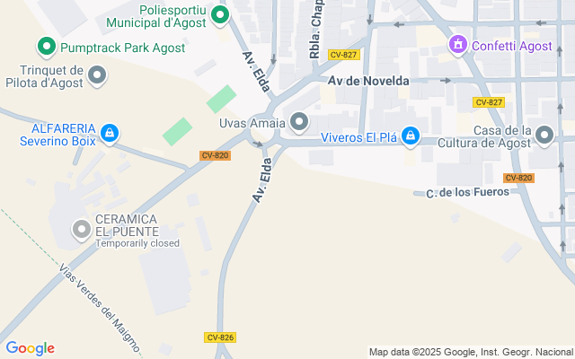 Agost se ubica a 18 km de la capital alicantina, con accesos viarios mediante CV-820 y CV-827.