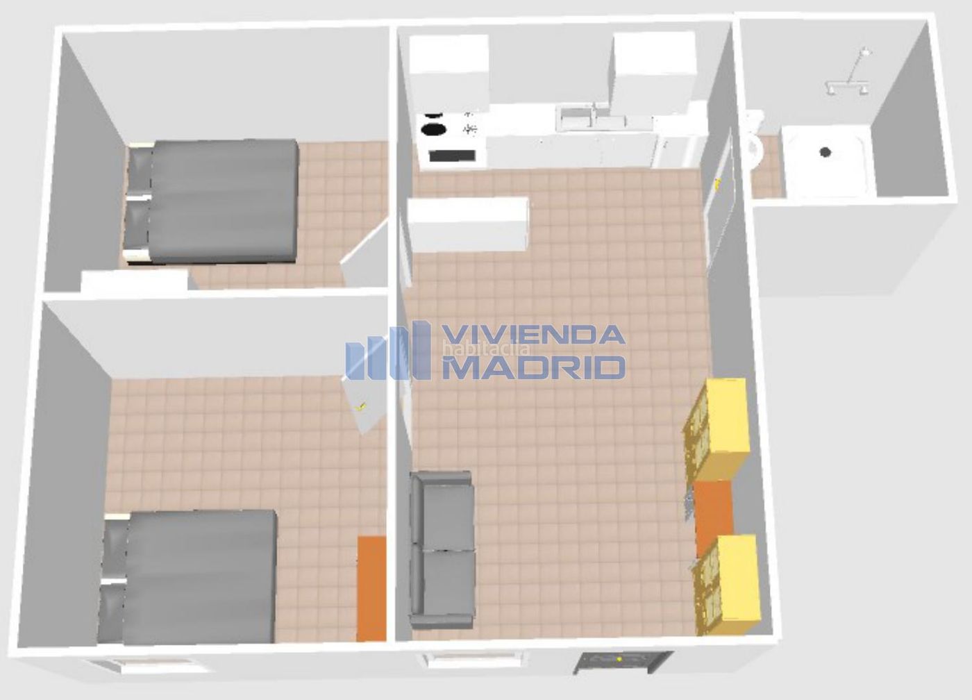 - 2 habitaciones