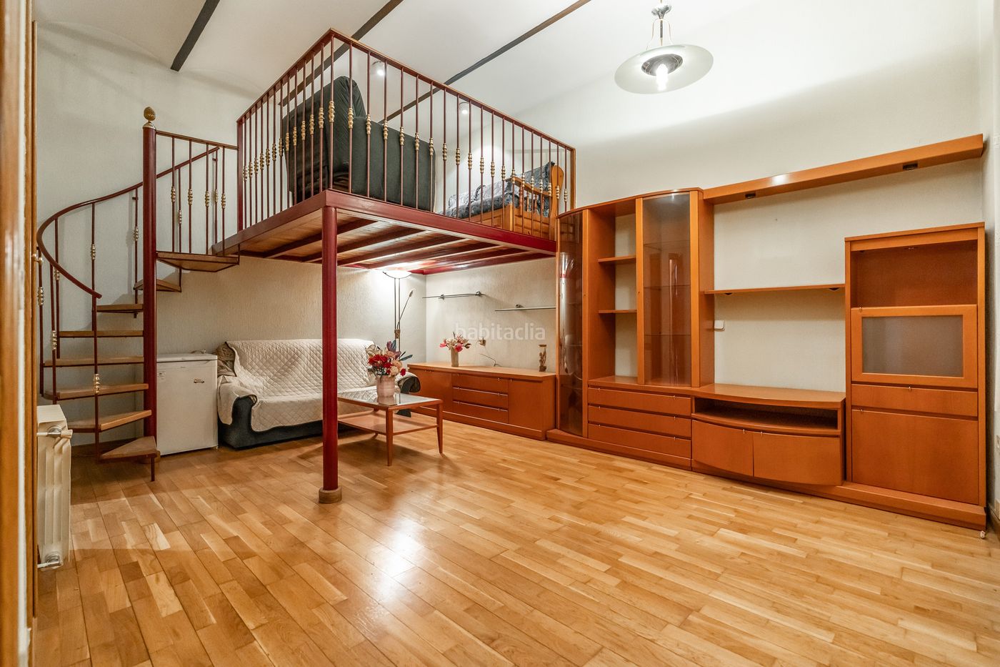El salón destaca por su doble altura, lo que aporta una mayor sensación de amplitud vertical y permite diferentes posibilidades de decoración y organización del espacio.