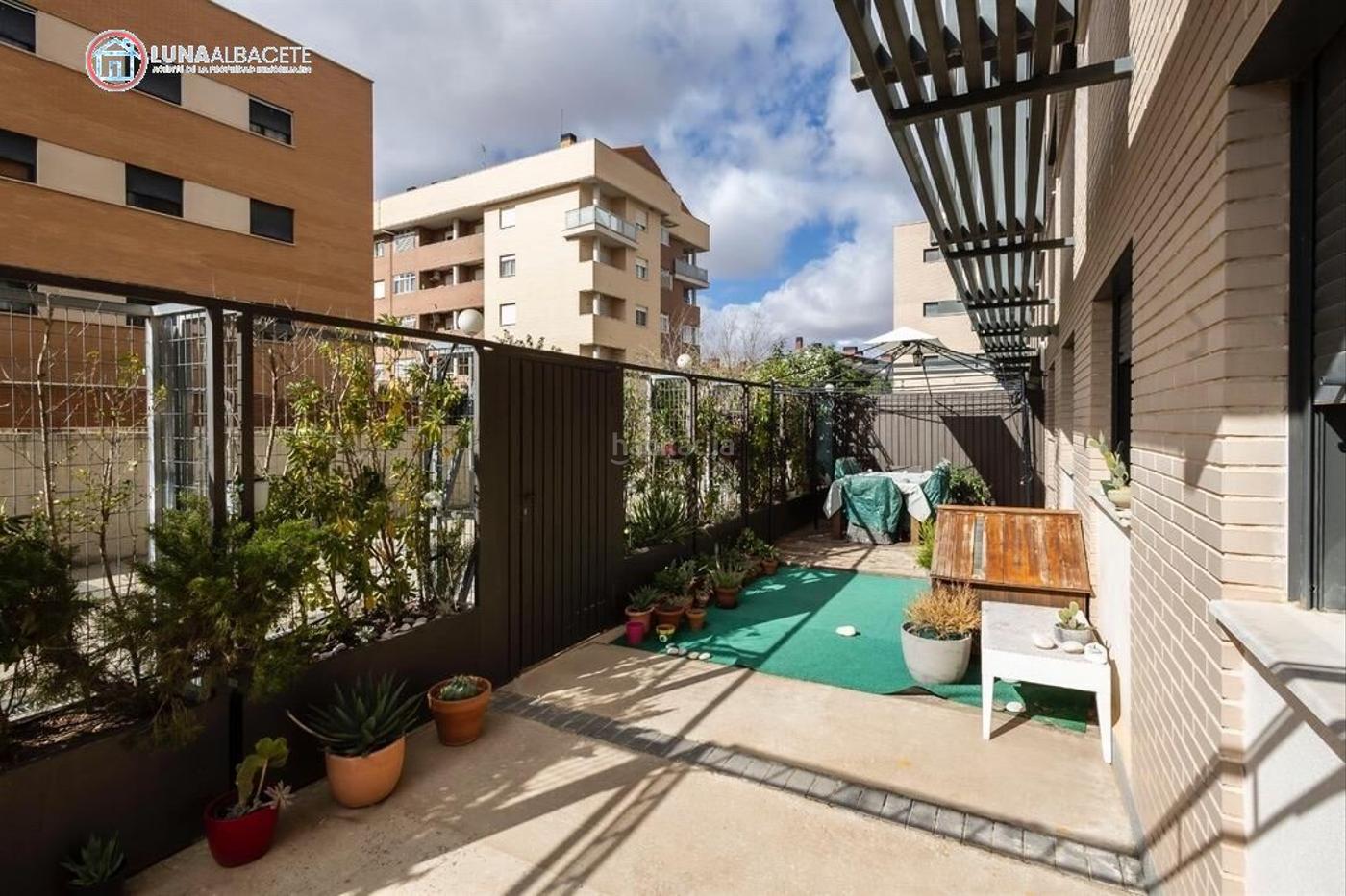 API LUNA INMOBILIARIA VENDE ESPECTACULAR BAJO-nAPI LUNA INMOBILIARIA VENDE Piso bajo en Albacete zona Facultad de Medicina, . La vivienda dispone de 152 metros construídos, que se distribuyen en: 105 útiles de piso , 43 de terraza, más zona ajardinada.....El piso tiene un gran salón-comedor con acceso directo a la terraza, , 4 habitaciones dobles, con armarios empotrados, 2 baños completos, uno de ellos en suite, la cocina equipada, totalmente amueblada con electrodomésticos de alta gama...La carpinteria interior de roble, suelo de tarima de alta calidad en color wengué, carpinteria exterior de aluminio / climalit... En La terraza nos encontramos con un velador que está sobre una tarima de madera maciza de IPE, jardines por todo el perímetro de la misma, toma de agua, hamaca..... para disfrutar todo el año...Extras: armarios empotrados, ascensor, balcón, galería, jardín, terraza (46 metros), ...La zona está provista de todos los servicios, autobuses, centros comerciales, colegios, hospitales, parques, supermercados,, al lado de la facultad de medicina......El garaje tiene 25 metros, está situado en el mismo edificio con muy buen acceso, el trastero tiene 8 metros, todo amueblado con estanterías. AMBAS COSAS INCLUIDAS EN EL PRECIO...MAGNIFICA PROPIEDAD EN ZONA MUY COTIZADA DE LA CIUDAD..
