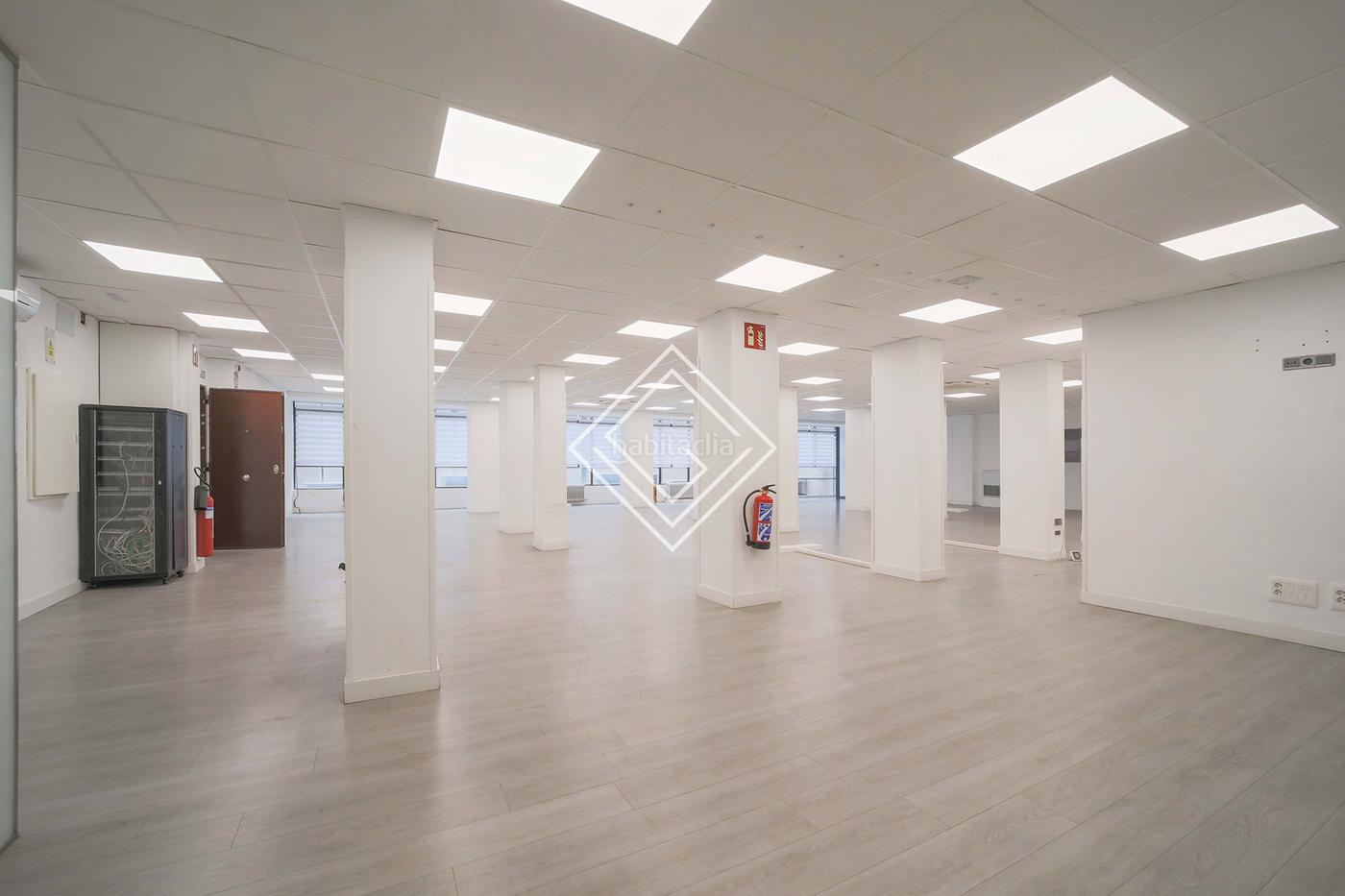 La oficina está muy diáana con gran cantidad de puestos de trabajo y algunas salas. Cuenta con dos cuartos de baño propios, office, tres entradas independientes y ascensor con acceso directo y exclusivo a la oficina. Suelo de madera y techo registrable con luces LED.
