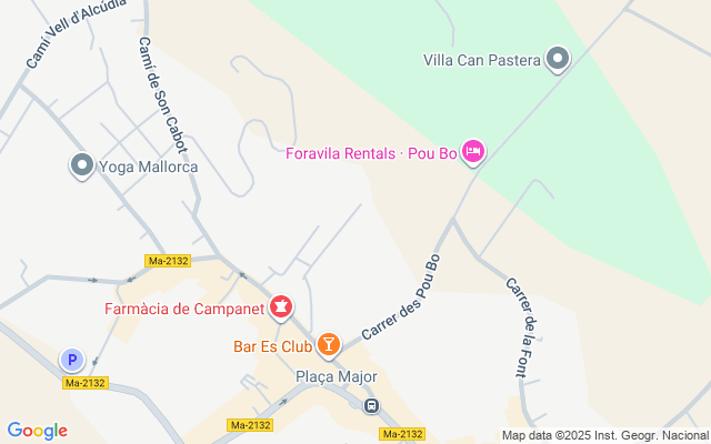 Campanet - un encantador pueblo Mallorquin con gran ambiente ofrece todo lo que hace falta: auténticos bares, restaurantes, un mercado semanal, tiendas y supermercados. Cerca se encuentra Ses Font Ufanes, una hermosa zona de recreo con bosque, un arroyo y un pozo que inunda el bosque después de fuertes lluvias en las montañas de Tramuntana.